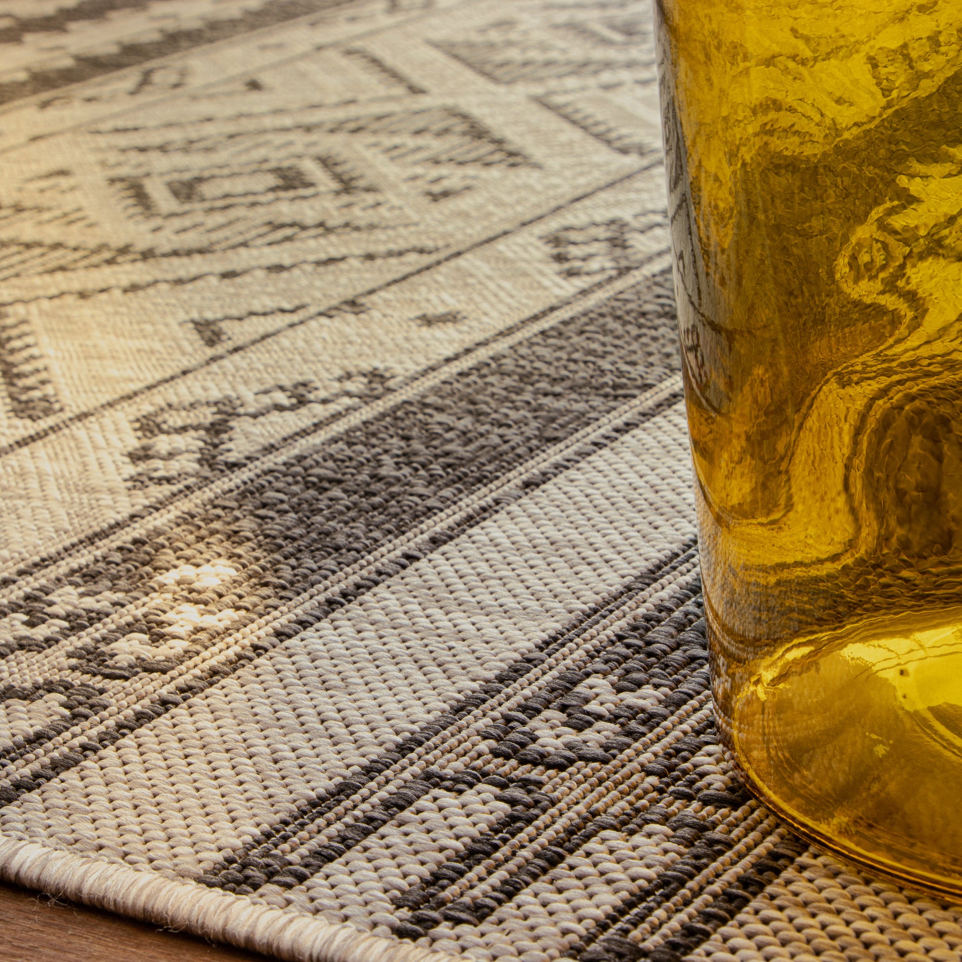 Een paar treurige vierkante meters kunstgras verpauperen als standaardoplossing op talloze balkons, terrassen en in wintertuinen. Groen, vezelig en levenloos – behalve misschien tijdens een vrolijke barbecue of als de begonia nog even zwaait. Maar genoeg is genoeg. Tijd voor iets beters. OBSESSION introduceert: het designvloerkleed My Outdoor – voor binnen én buiten! En hiermee kun je niet misgaan. Klassieke dessins in warme aardetinten – van oosters en Zuid-Amerikaans tot modern geometrisch – allemaal uitgevoerd in een stijlvolle vintage-look met een vleugje elegantie. Of het nu je woonkamer is of je knusse zithoek buiten, My Outdoor brengt sfeer, karakter en een uitnodigende uitstraling. Het duurzame polypropyleen maakt het kleed bestand tegen weer en wind – van een flinke regenbui tot een omgevallen wijnglas, niets is een probleem. OBSESSION wil niet alleen je interieur, maar ook je buitenruimte verrijken – geen zorgen, alleen mooier maken. My Outdoor is het stijlvolle antwoord op grauw kunstgras en inspiratieloze buitenvloeren. Wacht niet langer – geef jouw ruimte de upgrade die het verdient!
