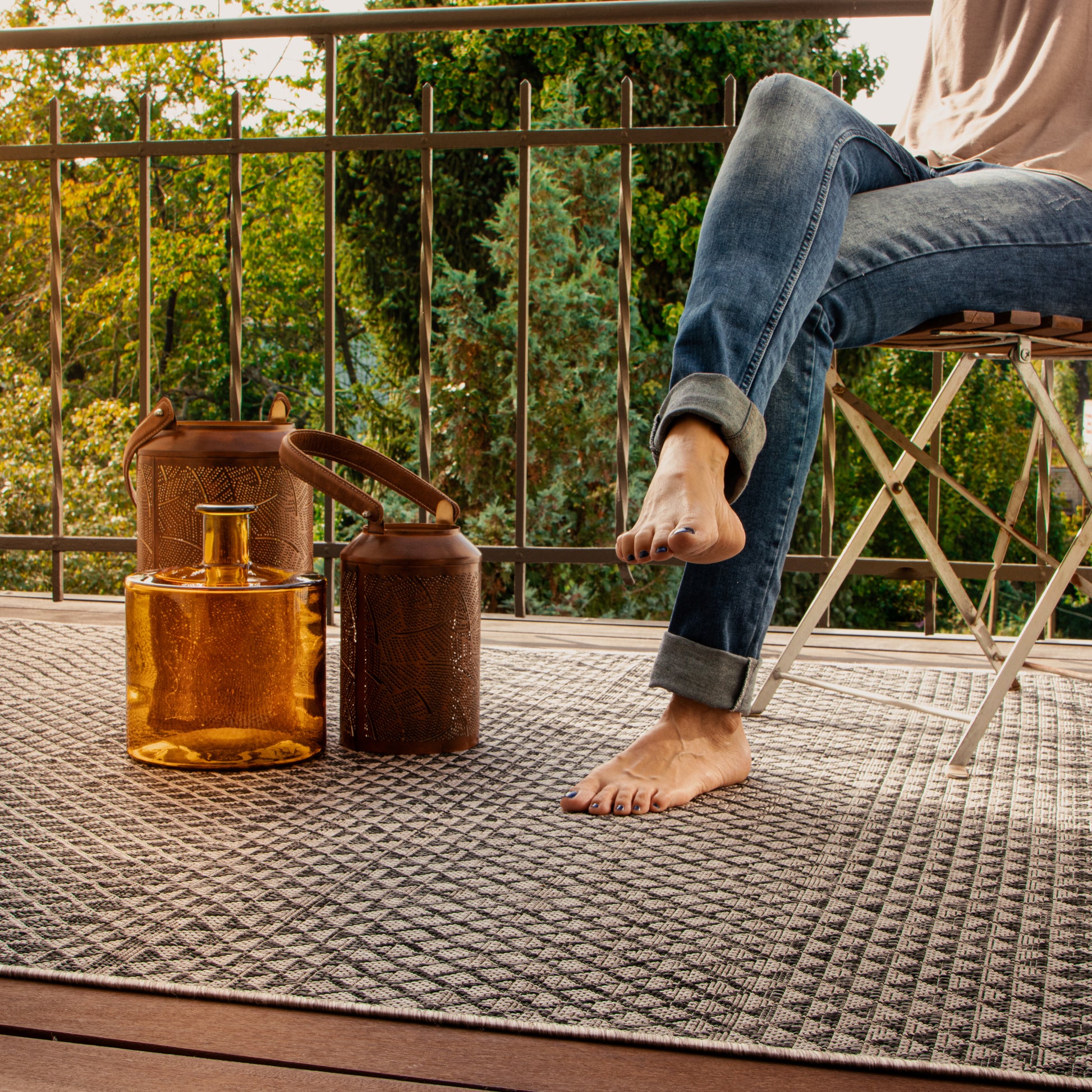 Een paar treurige vierkante meters kunstgras verpauperen als standaardoplossing op talloze balkons, terrassen en in wintertuinen. Groen, vezelig en levenloos – behalve misschien tijdens een vrolijke barbecue of als de begonia nog even zwaait. Maar genoeg is genoeg. Tijd voor iets beters. OBSESSION introduceert: het designvloerkleed My Outdoor – voor binnen én buiten! En hiermee kun je niet misgaan. Klassieke dessins in warme aardetinten – van oosters en Zuid-Amerikaans tot modern geometrisch – allemaal uitgevoerd in een stijlvolle vintage-look met een vleugje elegantie. Of het nu je woonkamer is of je knusse zithoek buiten, My Outdoor brengt sfeer, karakter en een uitnodigende uitstraling. Het duurzame polypropyleen maakt het kleed bestand tegen weer en wind – van een flinke regenbui tot een omgevallen wijnglas, niets is een probleem. OBSESSION wil niet alleen je interieur, maar ook je buitenruimte verrijken – geen zorgen, alleen mooier maken. My Outdoor is het stijlvolle antwoord op grauw kunstgras en inspiratieloze buitenvloeren. Wacht niet langer – geef jouw ruimte de upgrade die het verdient!